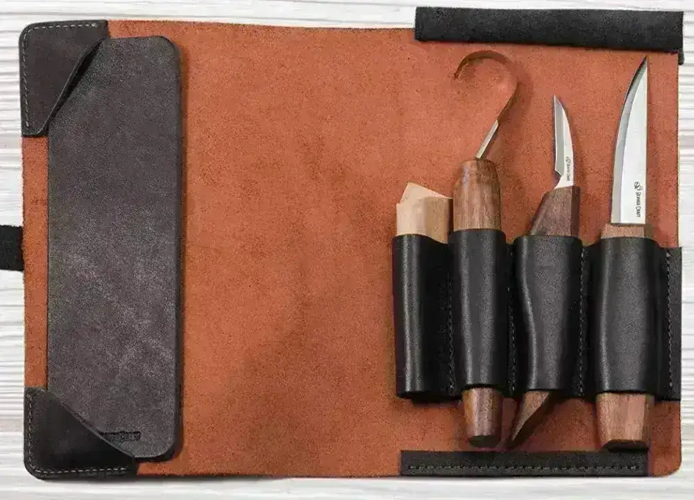 Handgemaakte messen uit Oekraïne. De S13X set is perfect voor jou als je goed houtsnijgereedschap wilt dat je in staat stelt om hout zowel nauwkeurig als efficiënt te vormen en uit te hollen. De kromme mes in deze snijset is perfect voor het uithollen van lepels, schalen en dergelijke, het meegeleverde snijmes heeft een kort en precies lemmet en kan worden gebruikt voor de meeste houtsnijwerk en de detailmes is perfect voor het fijnere werk om prachtige motieven en details in het hout te maken.
