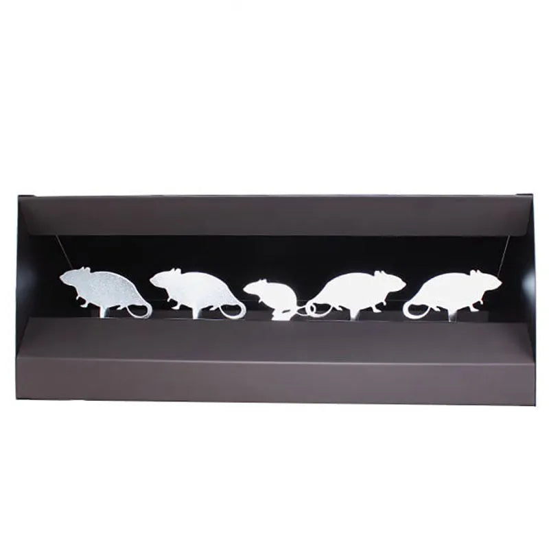 Deze kogelvanger met doelen is gemaakt van metaal en is bedoeld voor luchtbuksen en luftpistoler . De 4 silhouetten kunnen neergeschoten worden en als je de cirkel in het midden raakt, zullen de doelen automatisch weer opstaan.