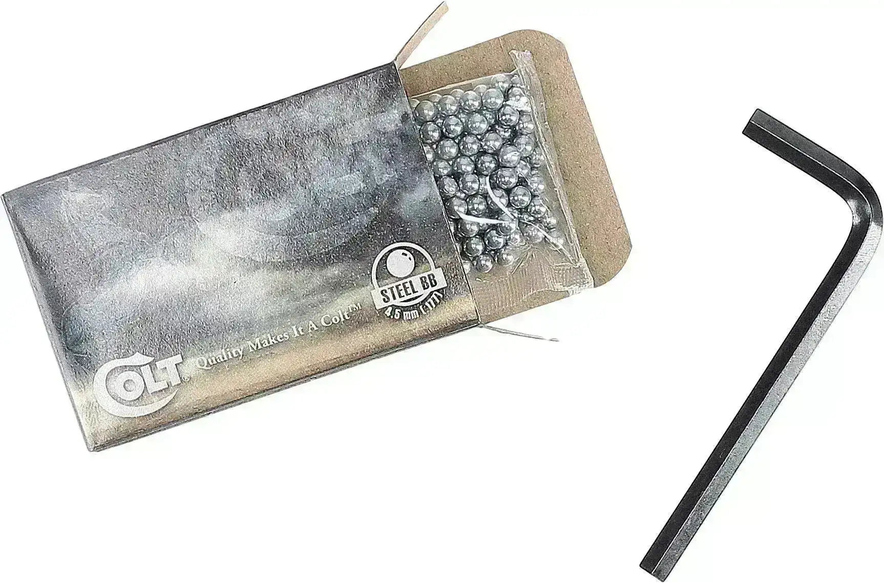 1x 12g Co2-patroon wordt in het magazijn geplaatst, samen met 4,5mm BB's. Het magazijn wordt in het geweer geplaatst, de laadhendel wordt overgehaald en u bent klaar om te schieten.