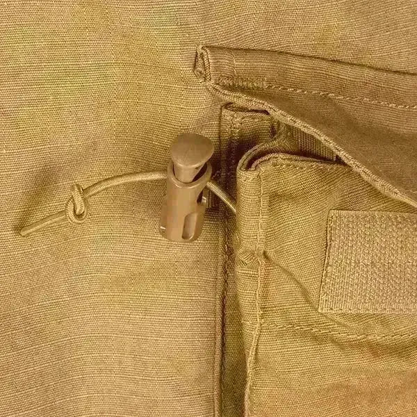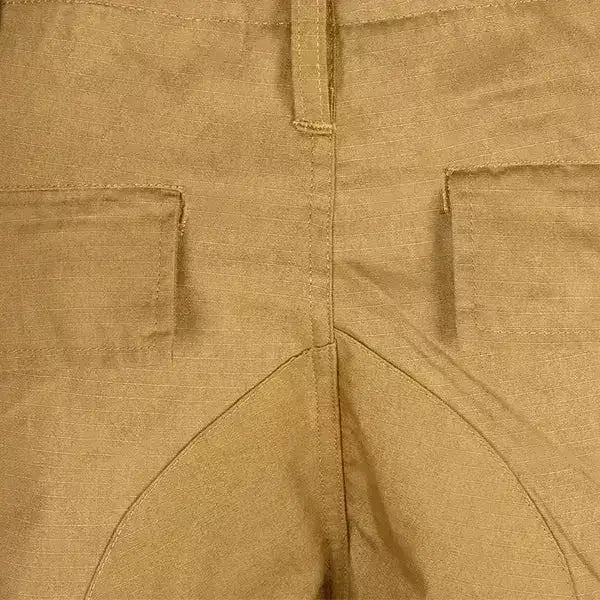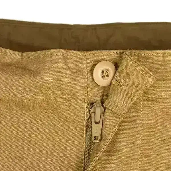 Slijtvaste en ademende tactische broek met veel ruimte in de zakken. De broek heeft rip-stop waardoor het extra slijtvast is. De broek heeft veel zakken, waaronder 4 stuks aan de voorkant, 2 stuks op de enkel en 2 stuks achter. Coyote bruine camouflage.