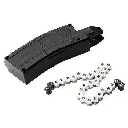 Hier heb je een extra magazijn voor Sig Sauer's MPX en MCX 4.5mm Pellets modellen! Het magazijn is hetzelfde als die meegeleverd wordt en bevat 30 kogels. Er worden ook 3 stuks "riemen"