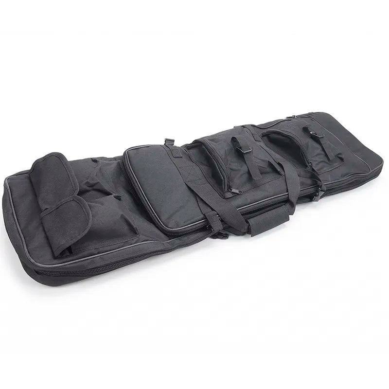 Hier heb je een wapentas met ruimte voor twee geweren, een grote in het hoofdcompartiment (tot 110 cm als je een externe kap gebruikt) en een kleinere in het zijcompartiment (tot 650 mm). Daarnaast heeft deze meerdere kleine vakken met ruimte voor kogels, tijdschriften en andere uitrusting die je nodig hebt als je in het bos bent.
