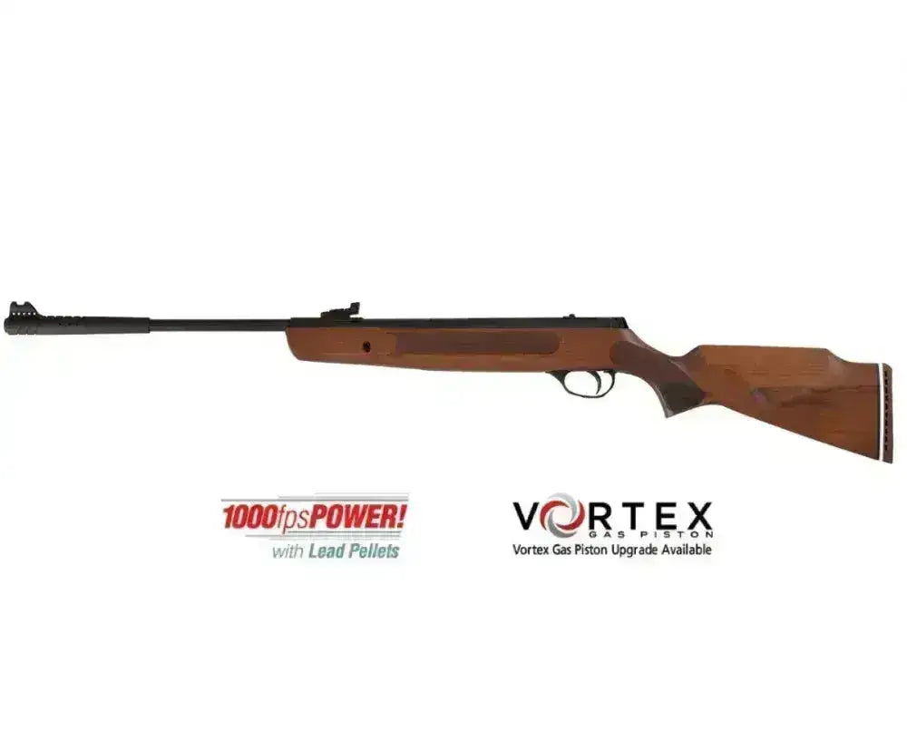 The Vortex Piston is specially developed for Hatsan rifles and can be compared to Crosman's Nitro Piston. It compresses air as you load and uses this to fire the shot. With the new Vortex piston, the sound is minimized after about 100 shots and you can notice a good difference between the old model and this new one. With the Vortex, this one will last much longer than the spring models.