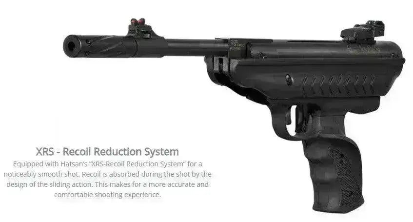 A good "old-fashioned" crack gun that has been upgraded to shoot much harder than the standard Mod 25 does! Hatsan's XRS Recoil Reduction System gives you minimal recoil and a much softer shot which results in better precision. In addition, the rifled barrel gives you maximum precision! The grip is ergonomically designed, so it fits very well in the hand. 1/2" UNF threads in the front allow you to mount a shock absorber.