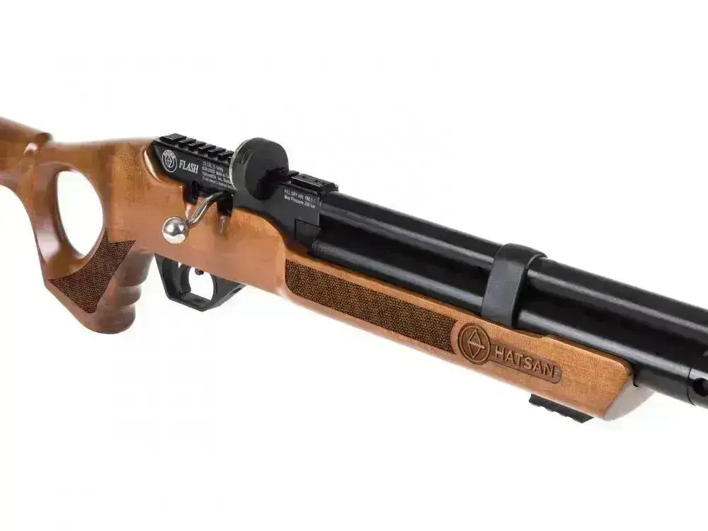 This edition features a gorgeous Turkish walnut stock, unlike the standard Flash QE, which has a polymer stock. This air rifle is fully silenced and has a rifled barrel, bolt action, and 2x 14 shot magazines that provide a total of 100 shots per fill. Due to its power and accuracy, it is particularly well-suited for target shooting at longer distances.