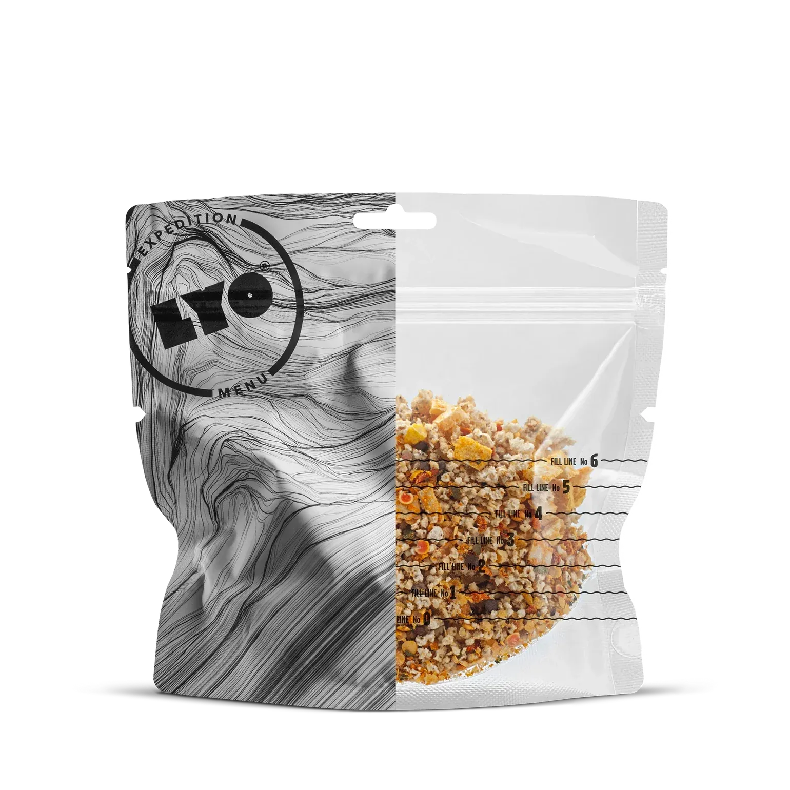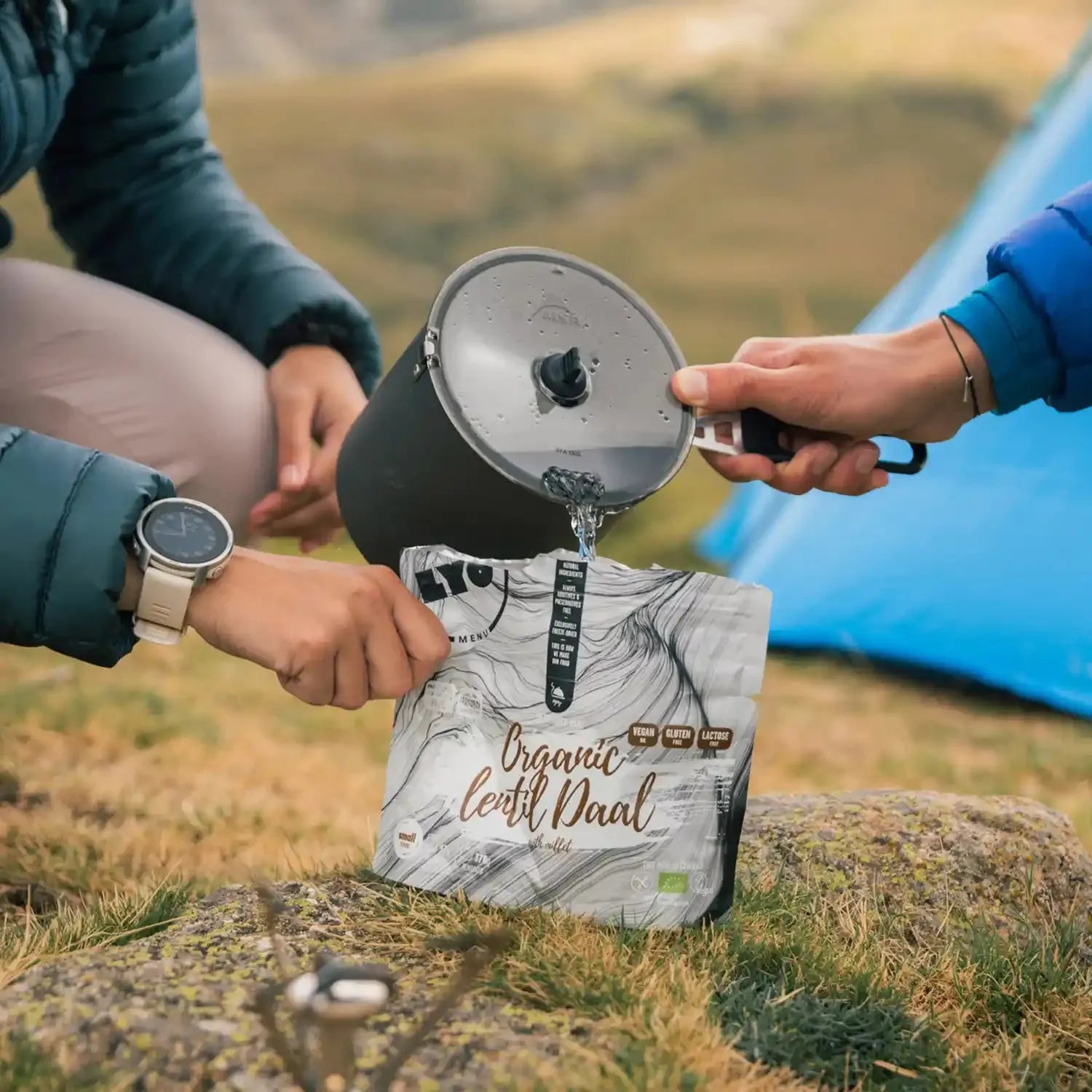 LYOFOOD Indian Lentil Dal offers you an aromatic and nutritious dish based on red lentils, coconut milk, and authentic Indian spices. Perfect for those looking for a vegetarian and dairy-free option while on the go. Freeze-dried for extremely low weight and long shelf life – ready for expeditions, camping, and wilderness adventures.