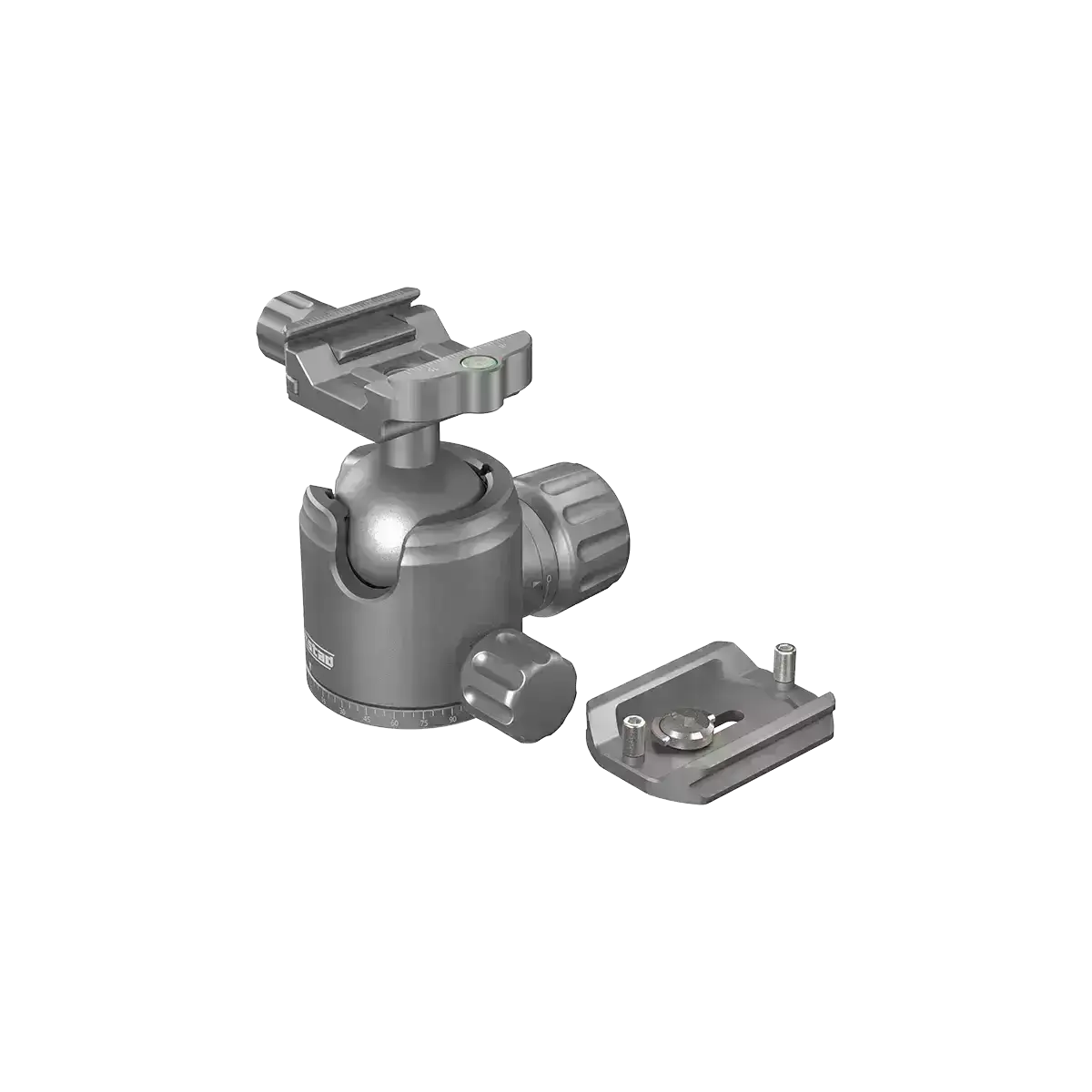 This 38mm ball head kit (model RSRH-01) provides flexibility and stability for professional use with precise adjustment. Equipped with 360° horizontal rotation and 90° vertical drop-notch, it allows for easy positioning for various needs.