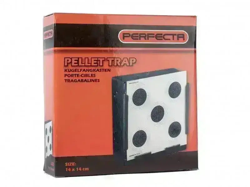 Box-shaped pellet trap suitable for targets of 14x14cm. Made of steel.