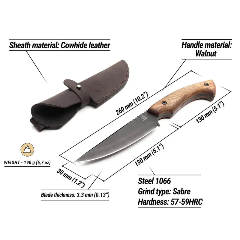 HGK6 Turkish Knife - Hunting knife made of Carbon Steel and Walnut