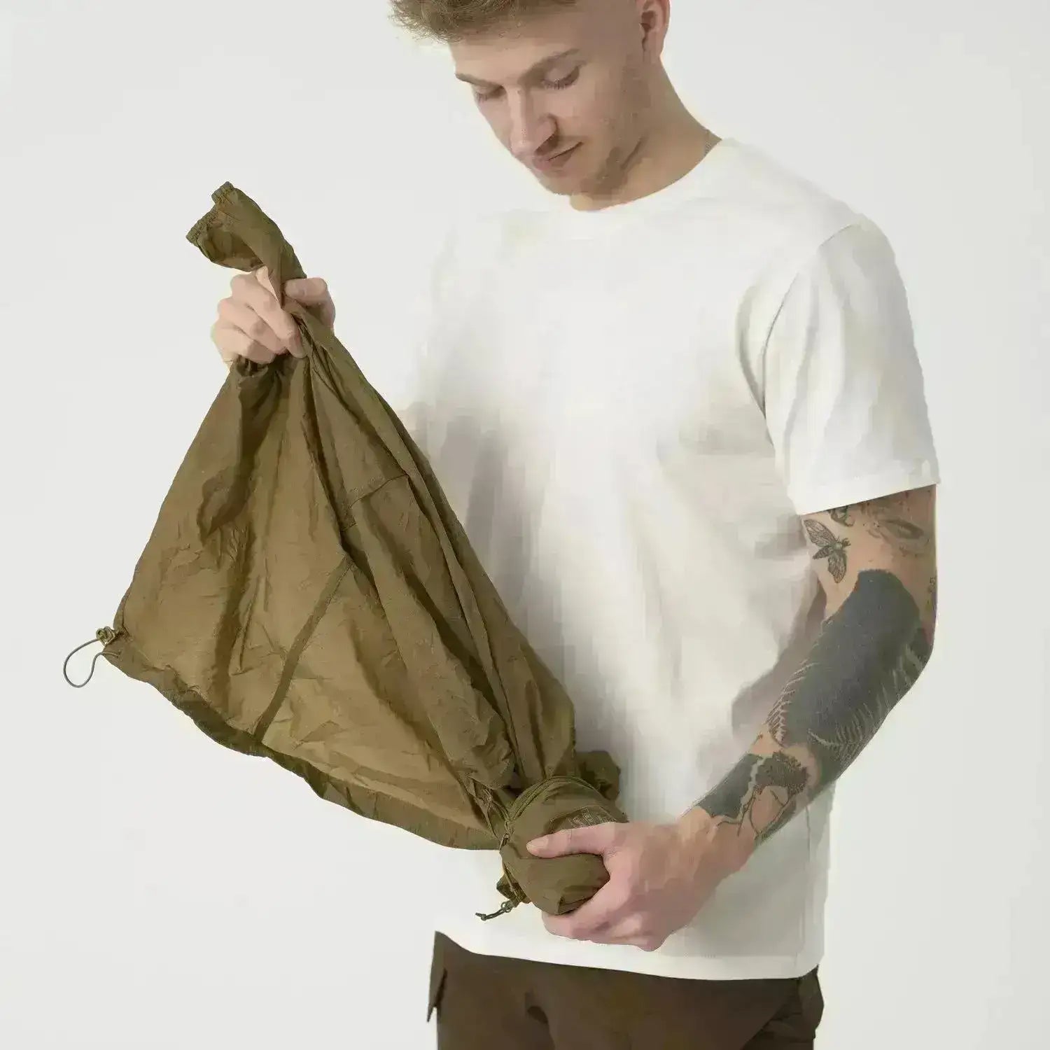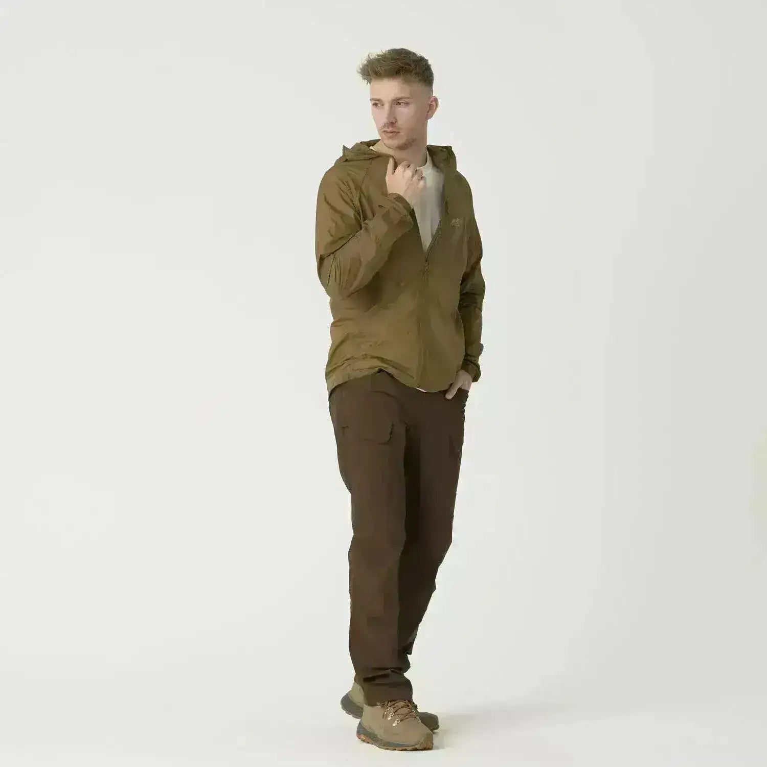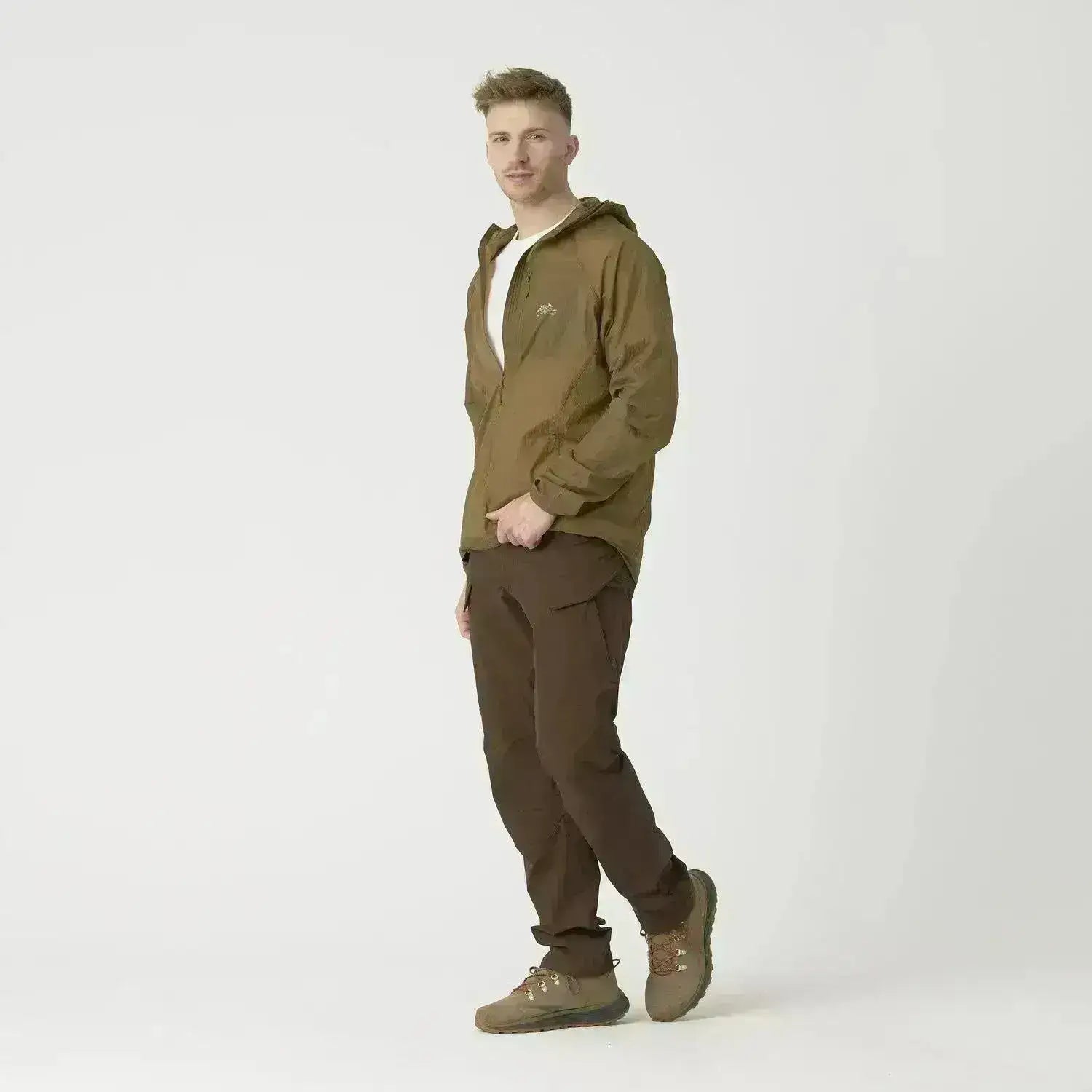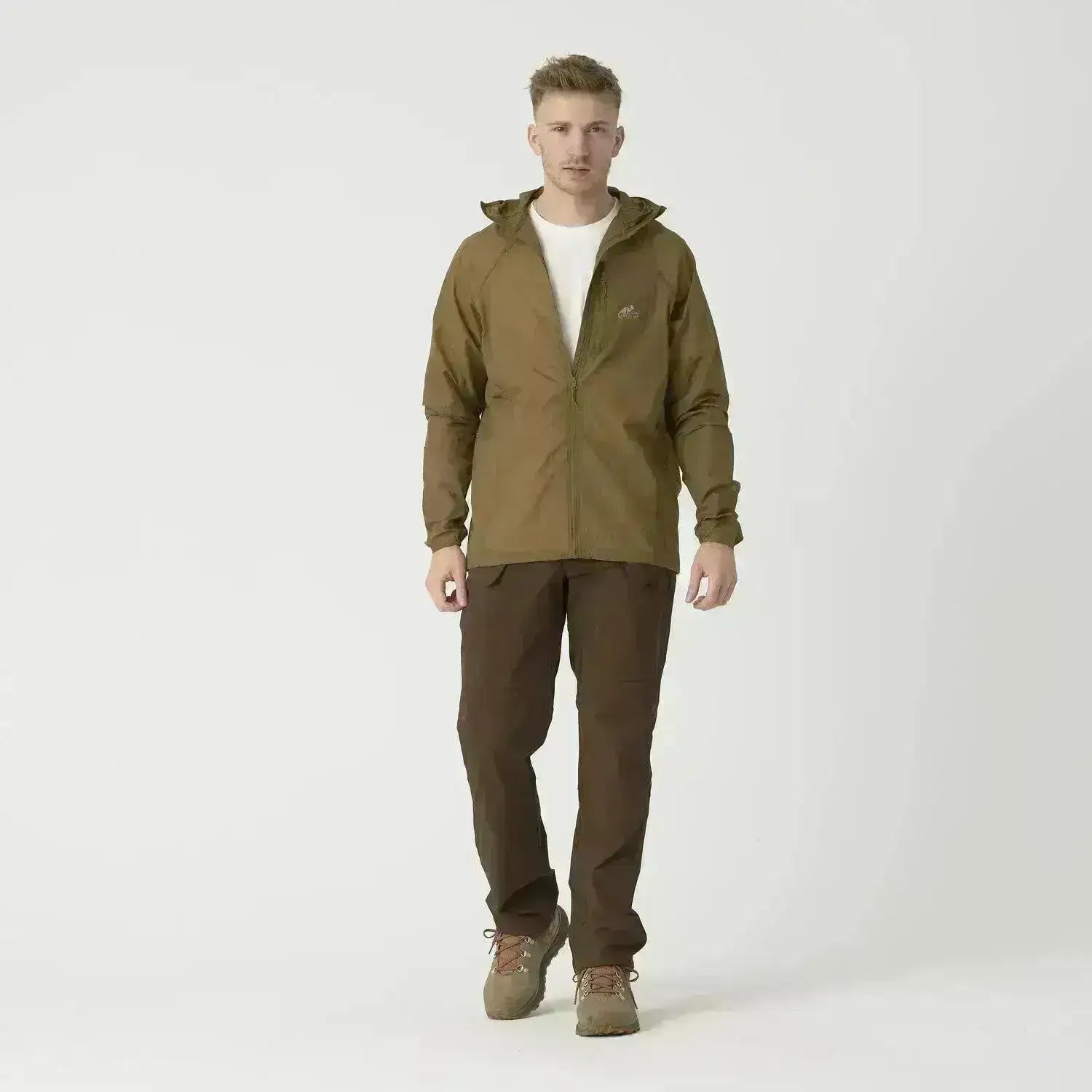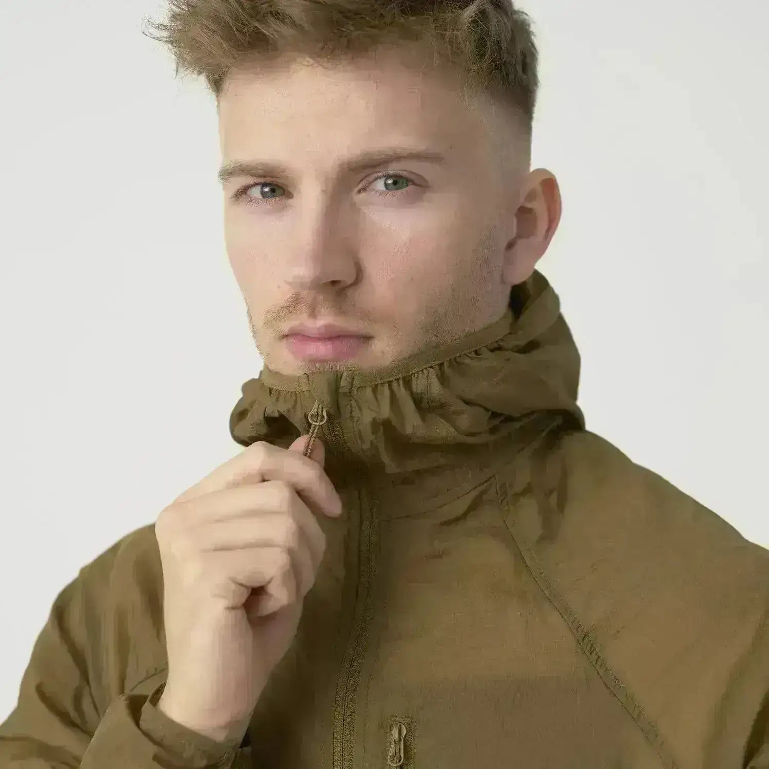 An absolutely excellent jacket to bring along on trips as it can be packed into itself (pocket on the inside of the chest) and doesn't get bigger than a small soda can. The jacket weighs only 120g and keeps weather and wind out. Perfect to pull out when the weather turns or when you're on a trip and need to take a short break and need a little extra on your body to keep warm.