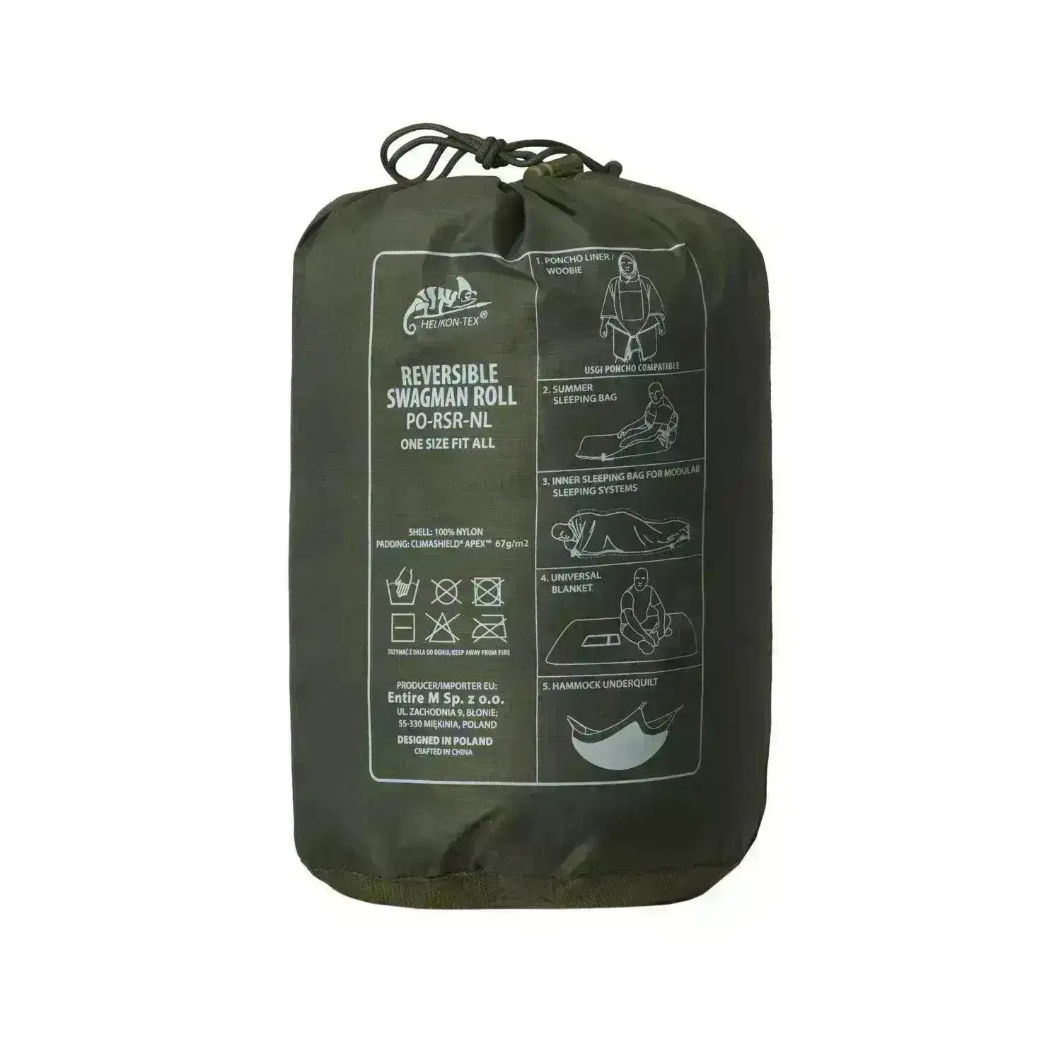 The Reversible Swagman Roll® combines the features of a blanket, a sleeping bag, a poncho, and a liner jacket.