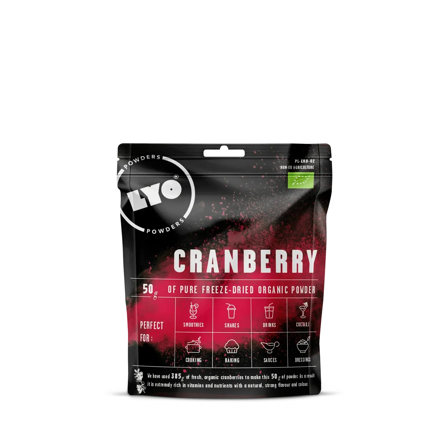 LYOFOOD Cranberry Powder brings you cranberries in their purest form, gently dried and ground into powder. Perfect for boosting smoothies, porridge, yogurt, or energy bars with a natural source of antioxidants and vitamin C. Made from organic cranberries – 100% natural, no additives.