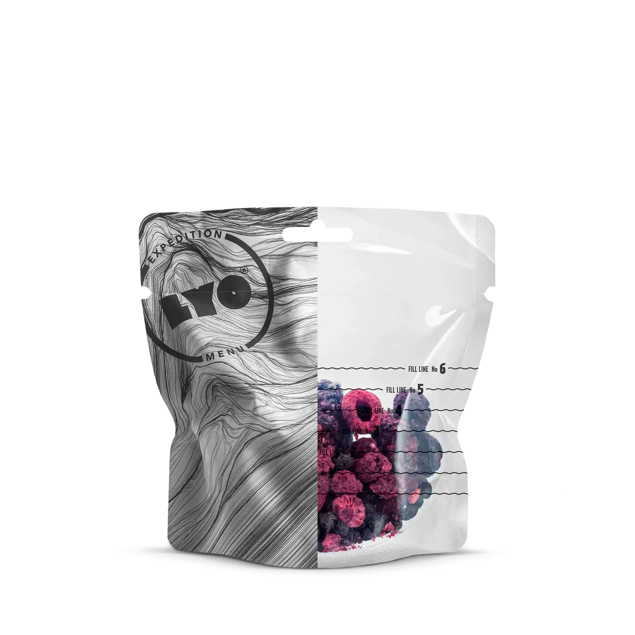 A fruity mix of raspberries, blueberries, and blackberries – perfect as a snack or added to cereal, smoothies, and desserts. LYOFOOD Wild Berry Mix is made without added sugar and preservatives, just 100% natural berries. Crispy and flavorful straight from the bag, or rehydrated with water or milk.