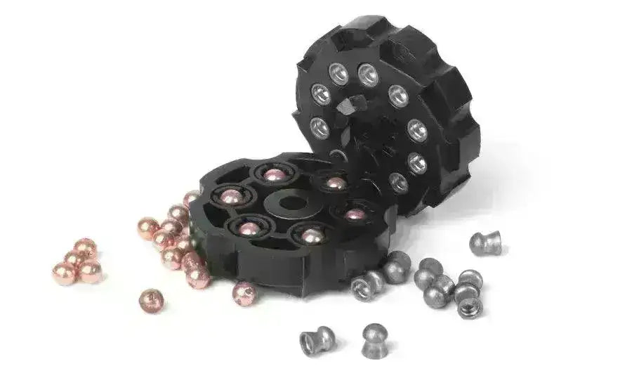 - Rotasjonsmagasin: 10-skudds pelletklips og 6-skudds BB-klips følger med