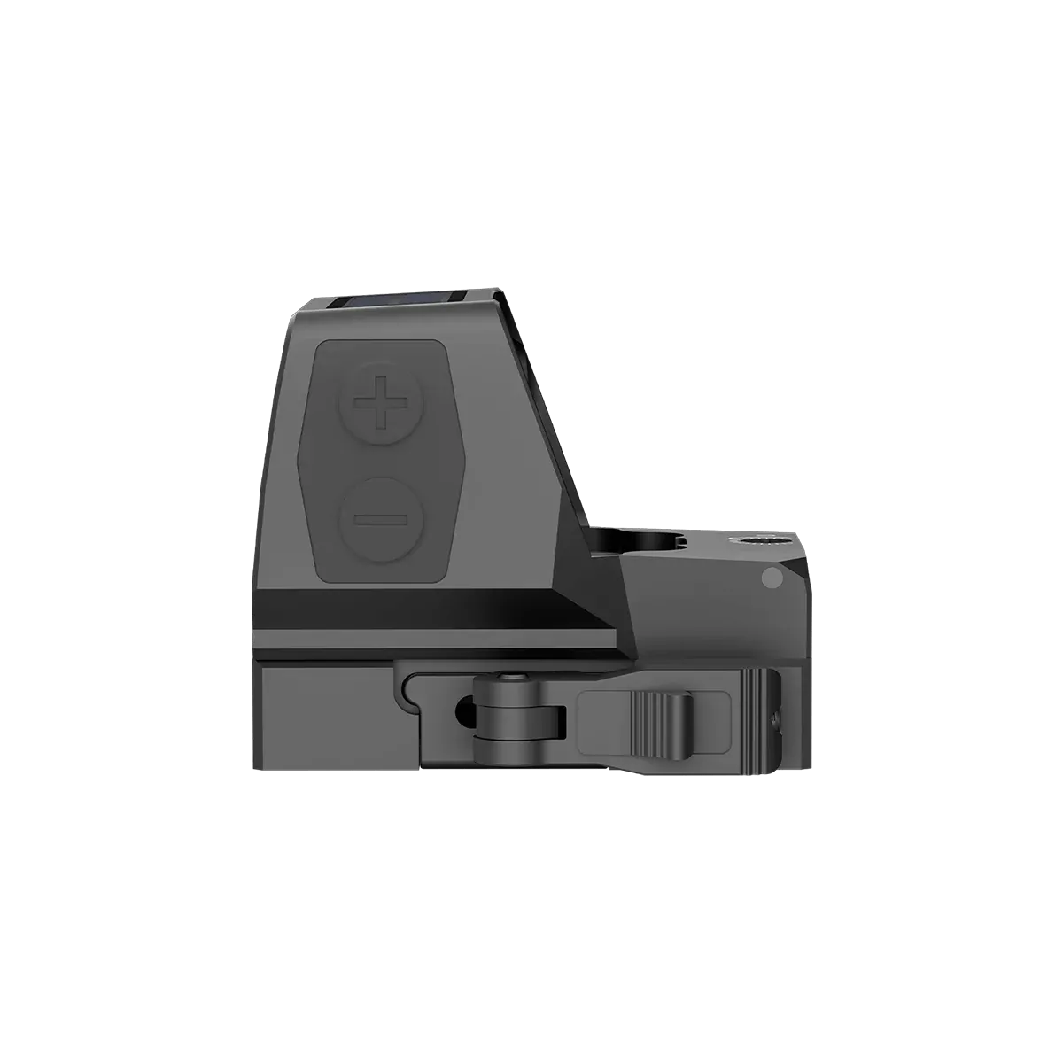 Full-metal red dot sight made of 6061 aluminum with solar panel. The sight is compact and fits perfectly on pistols with MOJ-footprint. The sight comes with a 21mm adapter and is well suited for rifles, pistols, and shotguns.