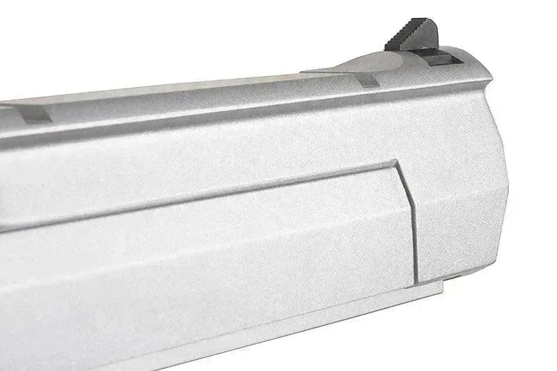 This iconic handgun is known from several games, movies and is considered the ultimate "BIG" gun! In the real steel version, this is used as a service weapon in the Israeli defense forces. Of all the handguns, this is one of the largest you can get your hands on. The gun has a powerful blowback recoil and is long-range - Thanks to a high muzzle velocity of approximately 350 fps, hop-up and an inner barrel of 135mm. The gun is constructed of solid polymer and the magazine is made of metal. Included with the gun It comes with a handy gun case that fits the replica perfectly. The moment you take it out of the box you feel how massive it is, with a hefty weight at 1100g!