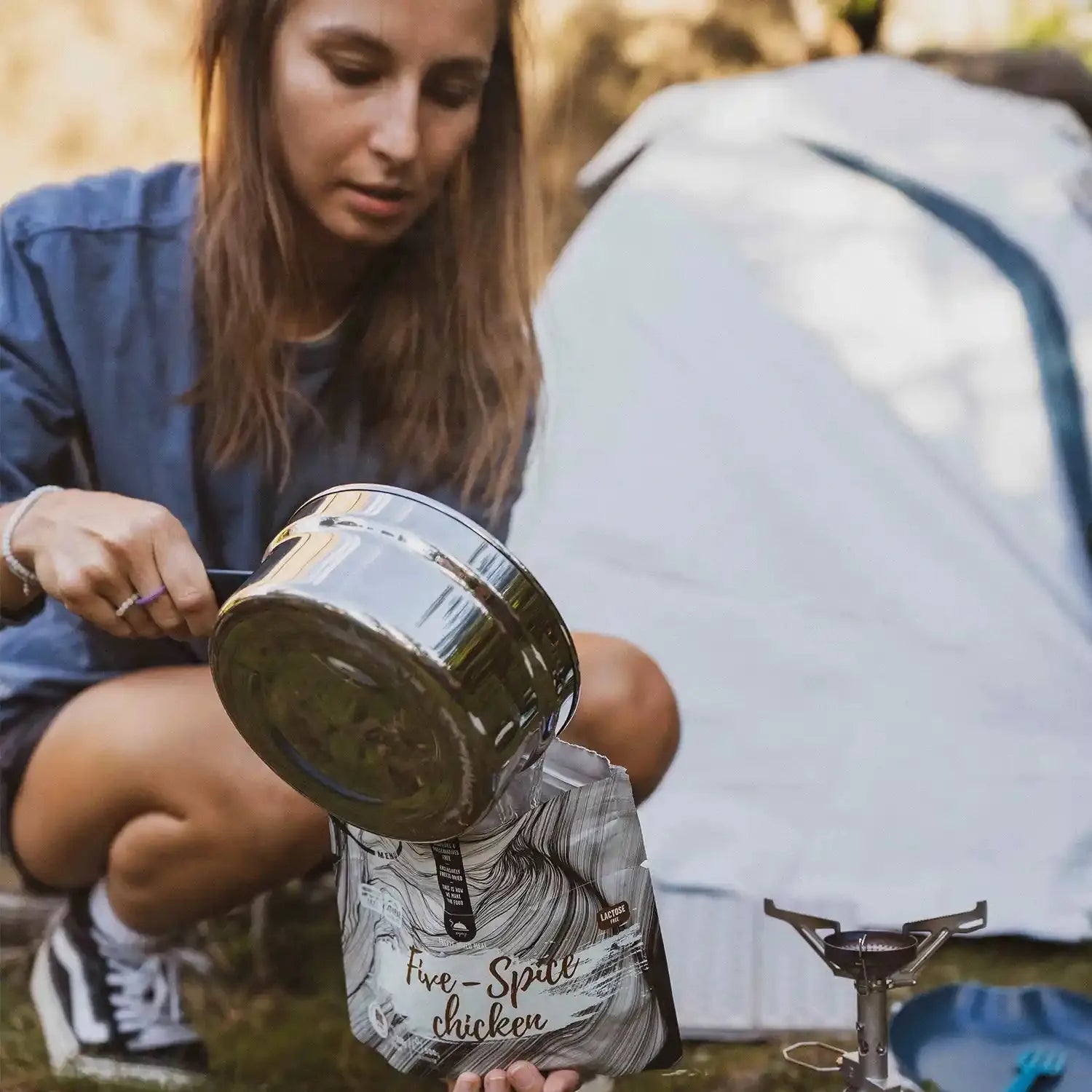 Bring the taste of Asia on your hike! LYOFOOD Chicken with Five Spices combines juicy chicken with vegetables and a rich blend of traditional Chinese spices. 100% natural ingredients, no preservatives, freeze-dried for extremely low weight and long shelf life. Perfect for adventurers seeking variety and rich flavors on their expedition.