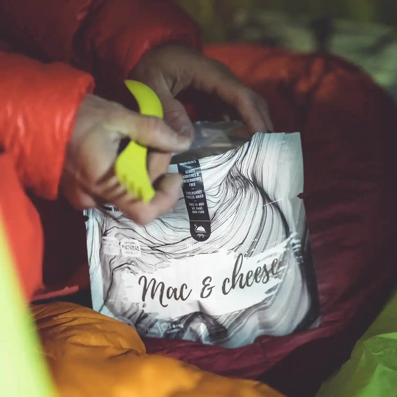 LYOFOOD Mac & Cheese – Creamy pasta dinner with cheese sauce Classic comfort food for the trail – quick, hearty, and flavorful LYOFOOD Mac & Cheese delivers the authentic taste of American cheese pasta – in a lightweight and durable, travel-friendly form. This hearty dish combines macaroni with a creamy sauce made from cheese, milk, and butter – all made with 100% natural ingredients and without artificial additives. Perfect for a quick dinner on the trail, expedition, or in your emergency stash.