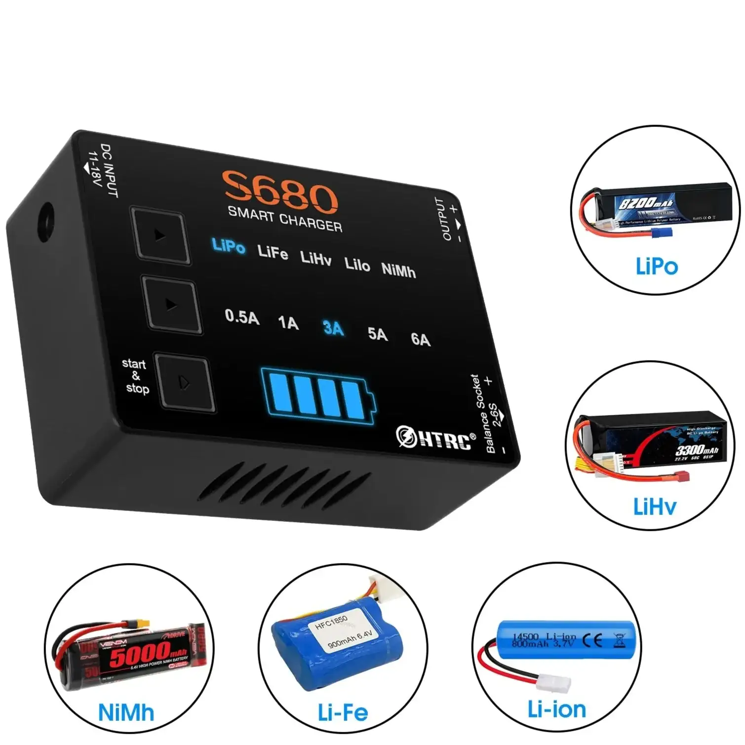 HTRC S680 lipo og nimh lader – kompakt lader for 1-6s Lipo/LiFe/LiHv/Lilon/1-15s Nimh