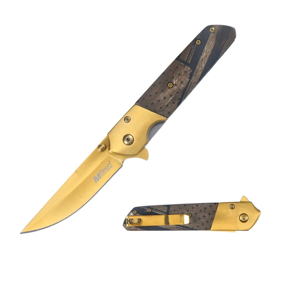 Whether you need a reliable tool for your trips, a stylish pocket knife for everyday use, or a gift for a knife enthusiast, the MTech MT-A2004BG is a top-notch choice.The sleek gold finish and the solid wood handle provide both looks and function in one.