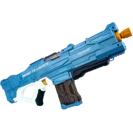 Insert the included battery, fill the water tank and pull the trigger! A precise and clear jet that can go a full 9 meters! You don't need to pump to shoot, everything happens electronically and you just have to pull the trigger and it shoots as fast as you can pull it. Recharge the battery when it's empty and you're ready for another day of fun water fights!