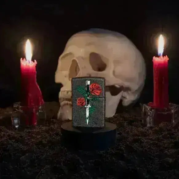 Zippo Lighter - Rose and Dagger Design