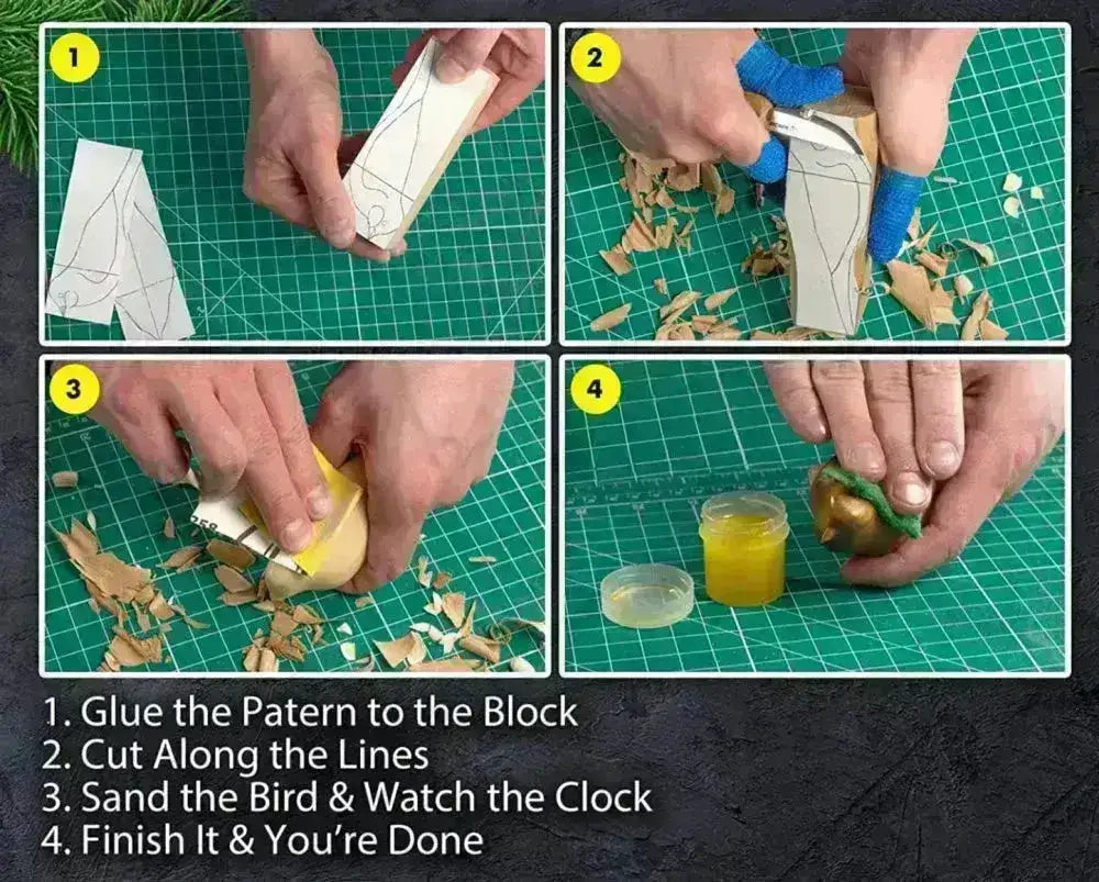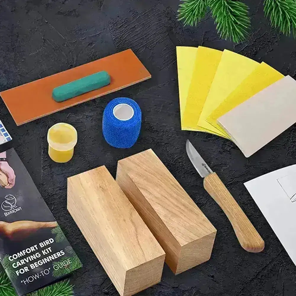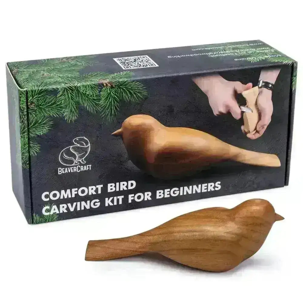 vogel houtsnijset bevat alles wat je nodig hebt om te beginnen met snijden en een prachtig houten figuur te maken.
