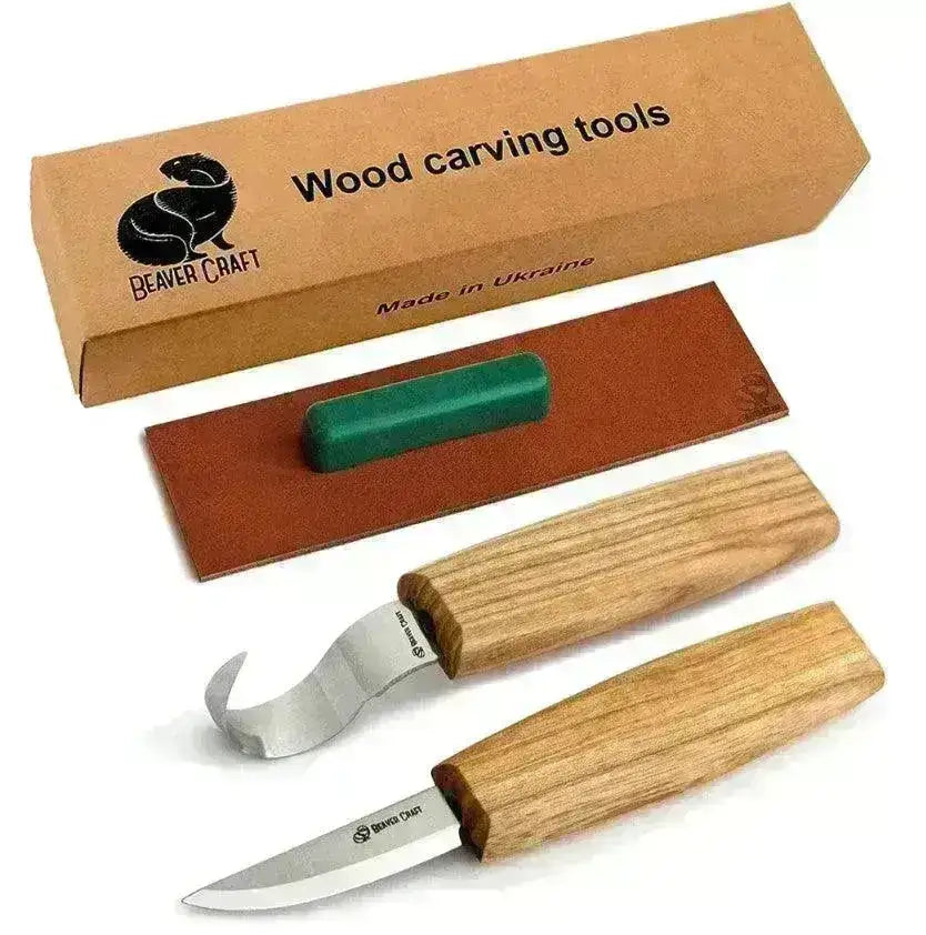 Handgemaakte messen uit Oekraïne. De S01 set is perfect voor jou als je goed houtsnijgereedschap wilt dat je in staat stelt om hout zowel nauwkeurig als efficiënt te vormen en uit te hollen. Het krommes in deze snijset is perfect voor het uithollen van lepels, schalen en dergelijke, het meegeleverde snijmes heeft een kort en precies lemmet en kan worden gebruikt voor de meeste houtsnijwerkzaamheden.