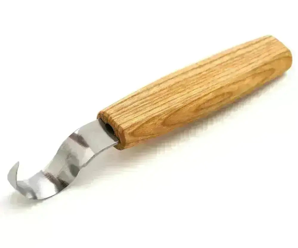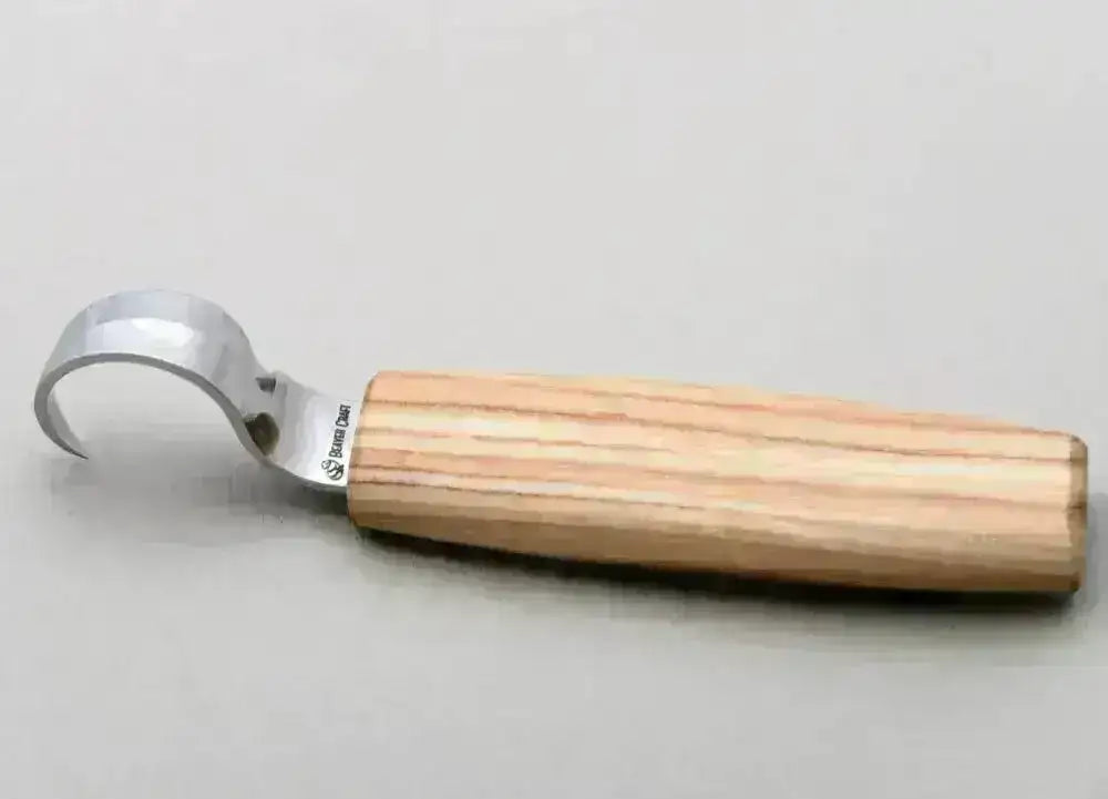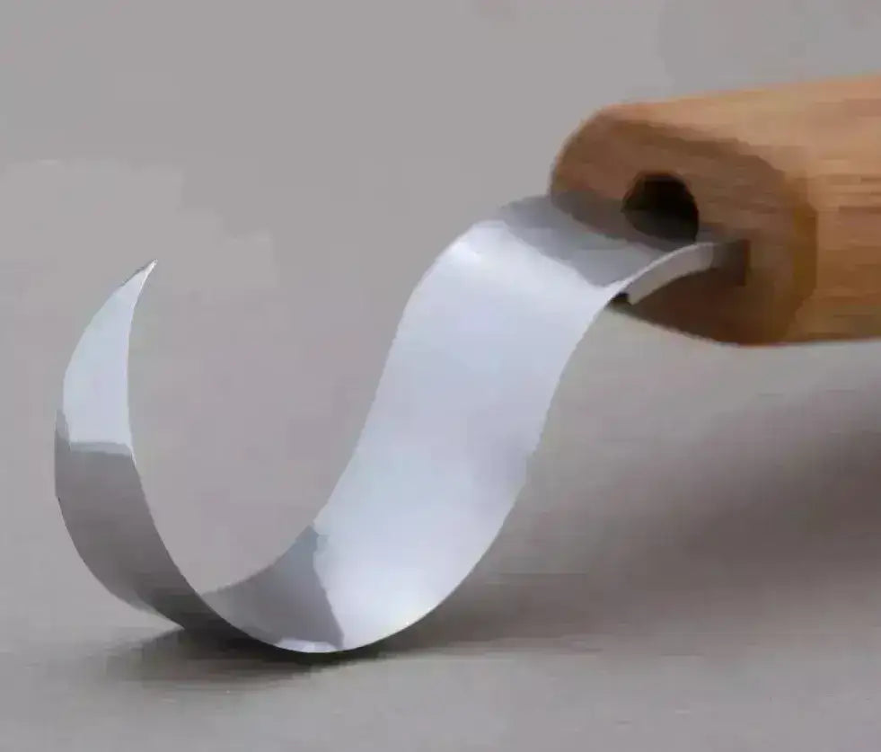 Een prachtig en stevig gebogen mes van 25 mm voor houtsnijprojecten. Onmisbaar mes voor het snijden van kommen, kopjes en lepels.