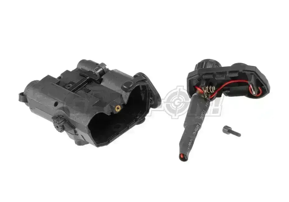 De groene laser kan worden aangezet en in sterkte worden aangepast door aan de schakelaar aan de voorkant te draaien.