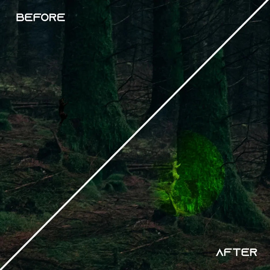 Doordat de laser in en uit kan zoomen op de straaldiameter, kan hij zowel als laserpointer als zaklamp worden gebruikt. Ideaal voor gebruik 's nachts, waarbij de laser doelen nauwkeurig kan lokaliseren en kan dienen als geïmproviseerde nachtoptiek.