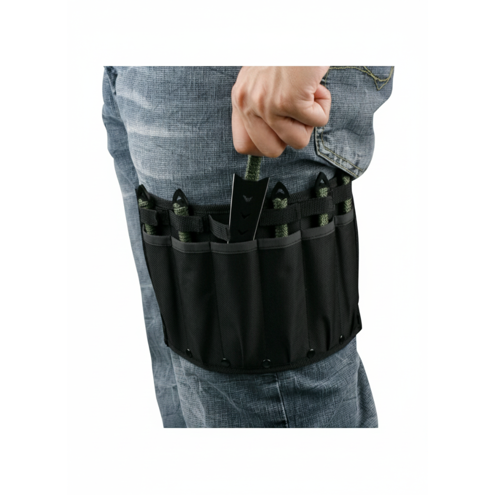Knivene er konstruert i 3Cr13 rustfritt stål, et materiale som kombinerer god seighet med rustmotstand. Den svarte finishen på bladene gir dem et tøft, taktisk uttrykk, mens det grønne cord-wrap-grepet sørger for at kniven ligger stabilt i hånden før utkast. Dette er kniver bygget for "Target Sports", der balansepunktet er kritisk for resultatet.
