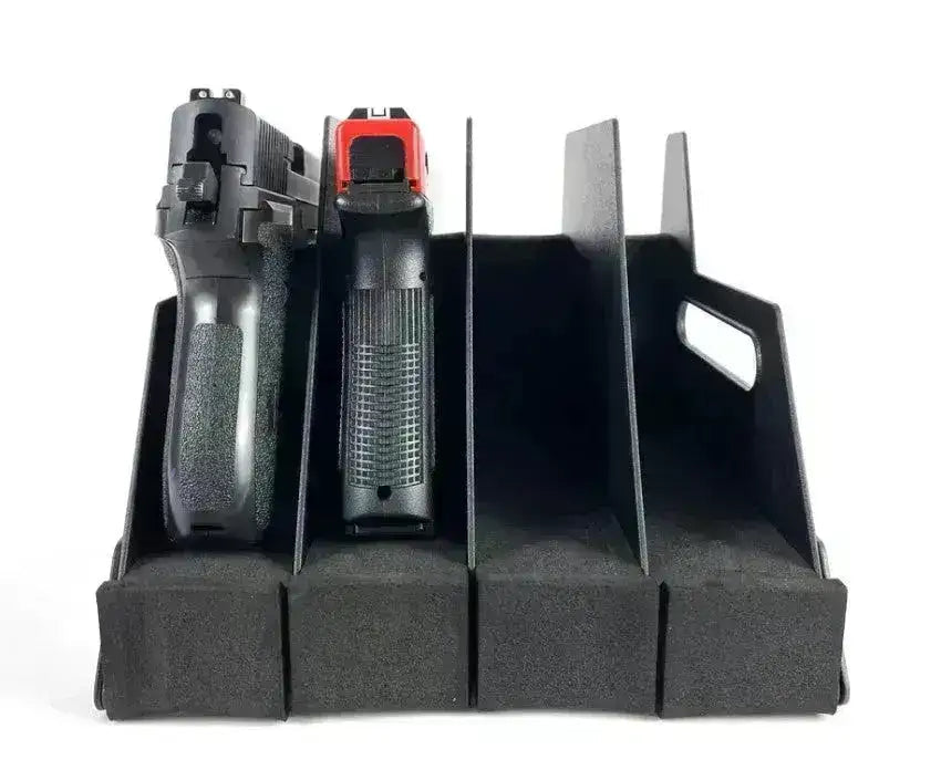 Dersom du har færre enn 4/8 pistoler kan du fint bruke de resterende plassene til tilbehør som magasiner og kuler for eksempel. Still ut dine airsoftpistoler på dette pistoldisplayet ryddig og enkelt!
