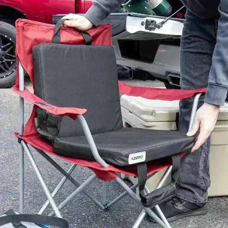 Maak koude stadionstoelen of koude jachtgebieden warm en comfortabel met de Zippo dubbel verwarmde stoel. Deze zachte en gewatteerde stoel kan worden aangesloten op een USB-compatibele voeding, zoals Zippo HeatBank®-units, voor regelbare warmte. Met een waterbestendige nylon constructie, meerdere warmteniveaus en een compact opvouwbaar ontwerp is hij perfect voor alle soorten buitenactiviteiten.
